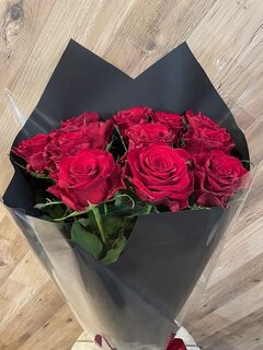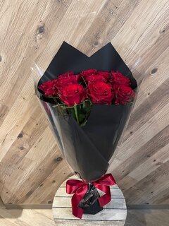 赤バラ12本の花束。